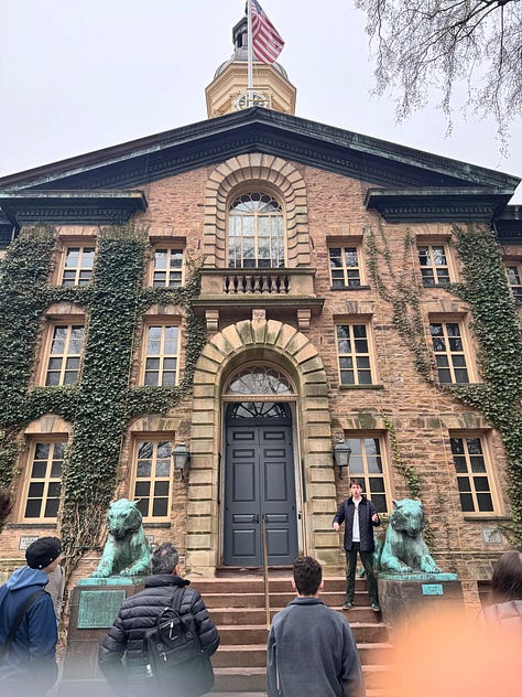 On our tour.. Matt and Thatcher asked me.. mom are you planning on applying? This was my first visit to Princeton and wow.. I was blown away. When you hear the name, you automatically picture the gorgeous Princeton University, right? And honestly, seeing it in person? Totally lives up to the reputation. Beyond its towering academic fame, Princeton boasts a rich history as a pivotal location in the American Revolution and a former capital of the nascent nation.Those elegant buildings are featured in one of my favorite books Take Ivy.